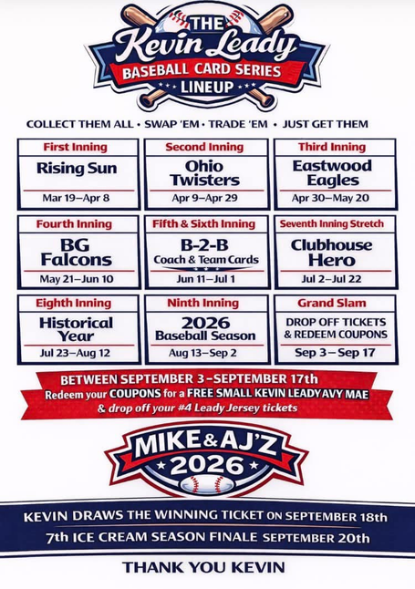 We wish Kevin and the Eastwood Eagles the best of luck during their 2026 baseball season and hope it’s a memorable and winning season.